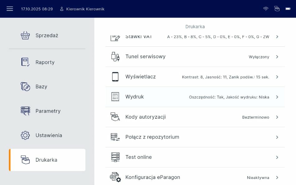 Bez względu na to, czy chcesz dodać nowy towar, włączyć funkcję e-paragon, skonfigurować płatności zbliżeniowe, czy zmienić jasność wyświetlacza drukarki fiskalnej - wszystko zrobisz bezpośrednio w systemie POS-UP.
